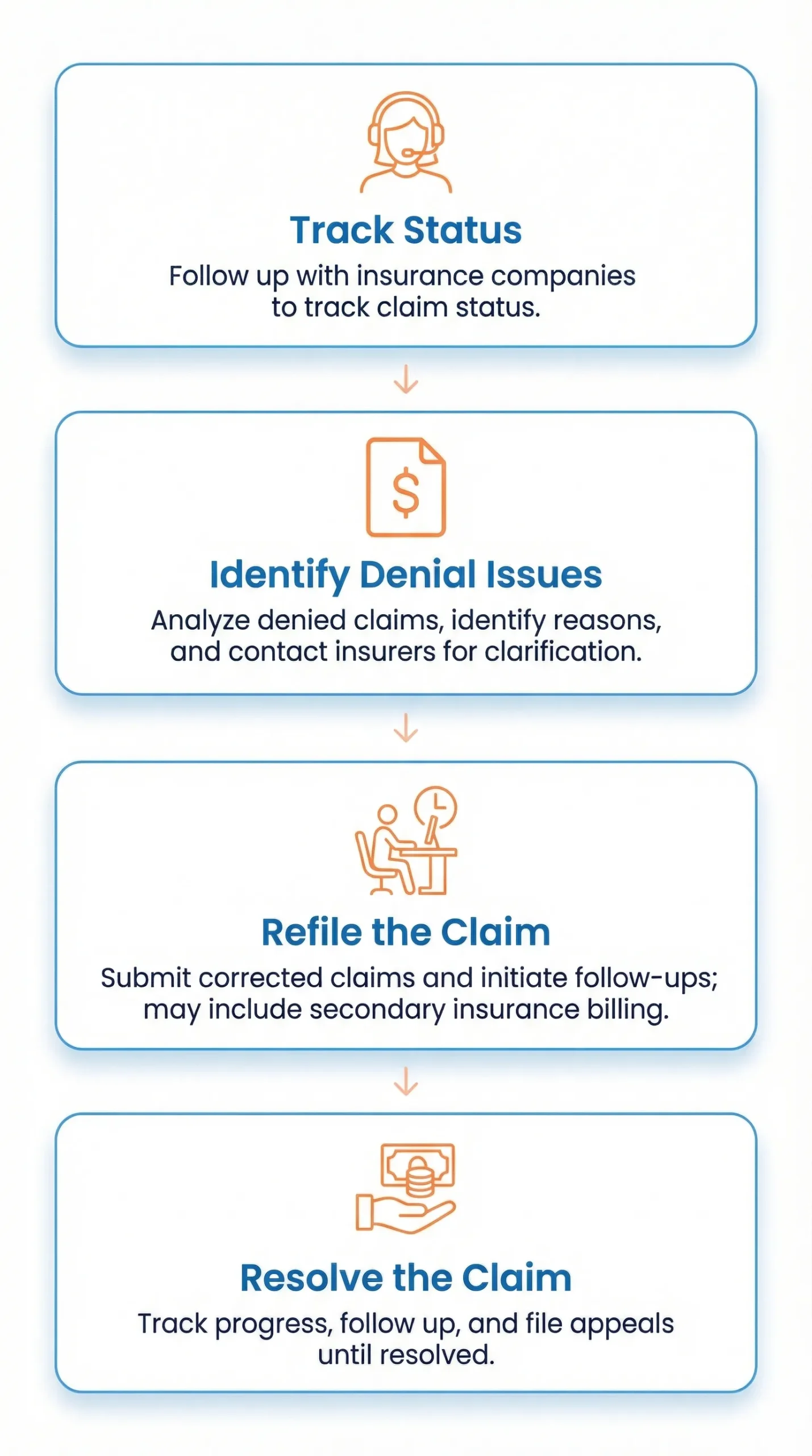 We quickly correct and resubmit denied claims to avoid payment delays.